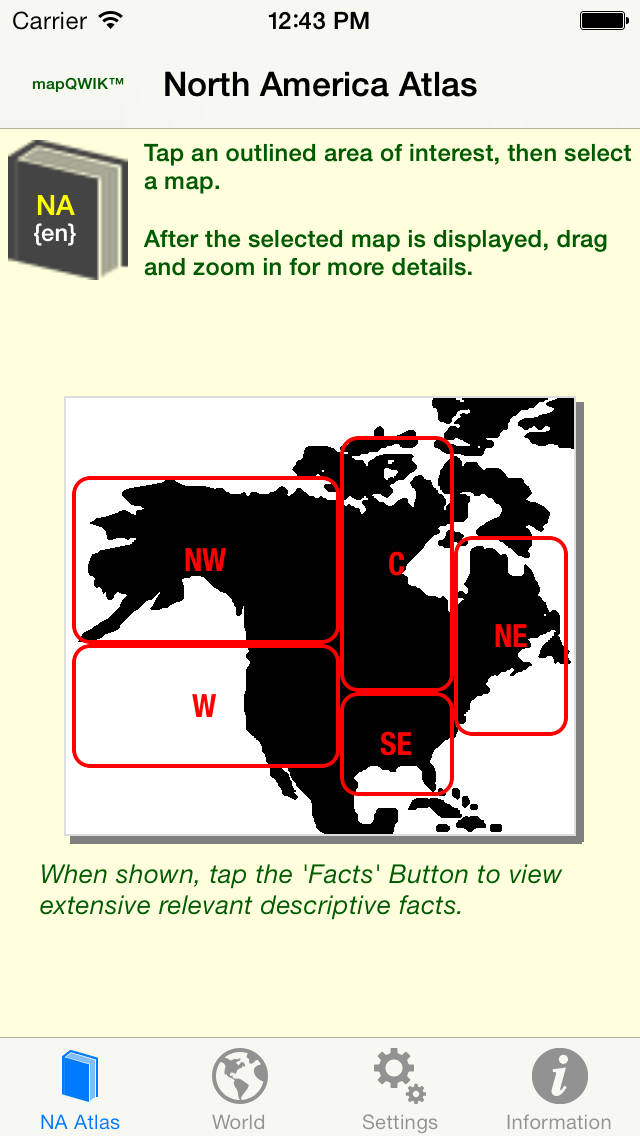 A "Facts" Button will often be seen in the upper-right corner of the screen. when this button is visible, it indicates that additional descriptive information can be displayed by tapping on the button:
